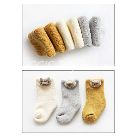 3 Pairs/Set 0 to 36M Winter Baby Socks Thicken Cartoon Comfort Cotton Newborn Socks